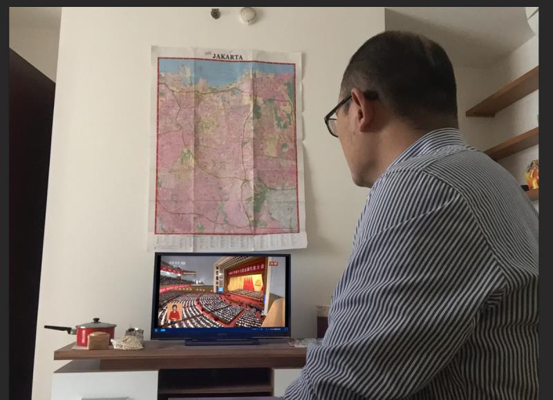 駐外項(xiàng)目的黨員群眾自發(fā)組織學(xué)習(xí)觀看十九大開幕式:
