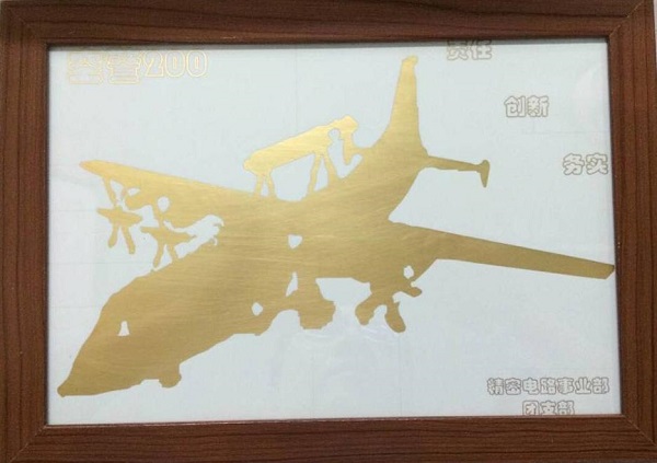 “責任”代表我們時刻牢記身肩國防重任;“創(chuàng)新”突出了本次創(chuàng)新文化大賽的內涵,同時也代我們印制板人在探索印制板制作技術上不斷創(chuàng)新的精神;“務實”代表印制板人腳踏實地,一步一個腳印的走在行業(yè)引導地位?!坝≈瓢瀹嫛弊髌穭?chuàng)新運用38所重點產品圖片代替?zhèn)鹘y(tǒng)的線路圖形,并用印制板生產工藝加工成型。