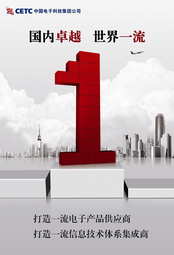 第一幅:“打造一流電子產品供應商和信息技術體系集成商(國內卓越 世界一流)”是中國電子科技集團公司特有的企業(yè)文化愿景。頒獎臺前冠軍席位上大寫的紅色“1”,在城市大背景的烘托下,反映出中國電科集團公司傲視群芳、誰與爭鋒的雄厚實力和必勝的信念。
