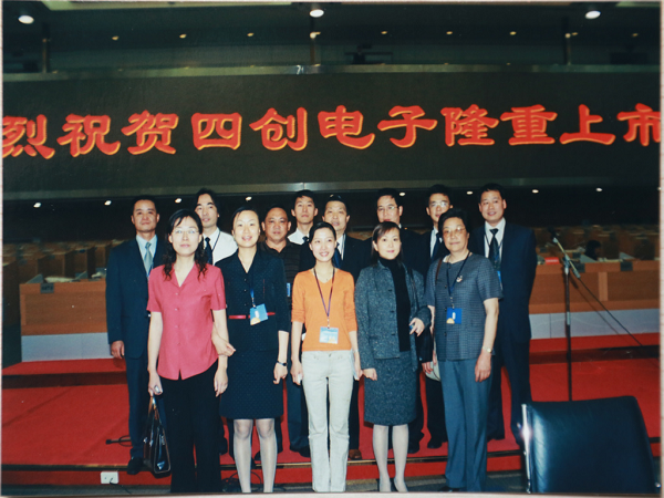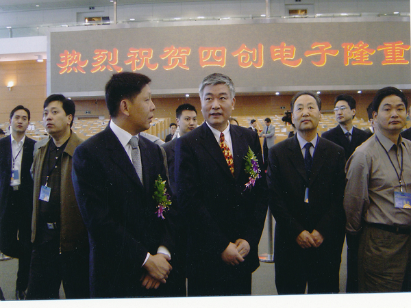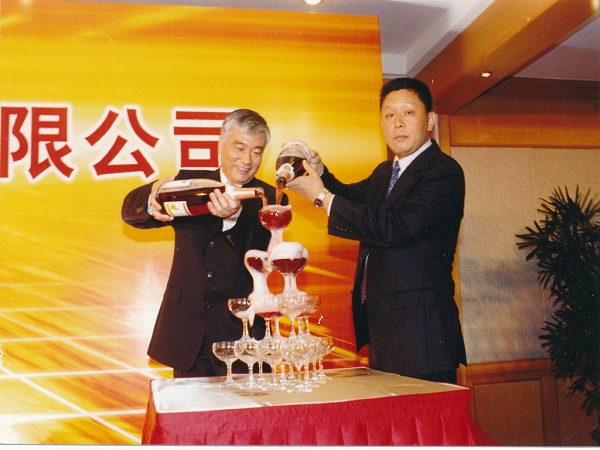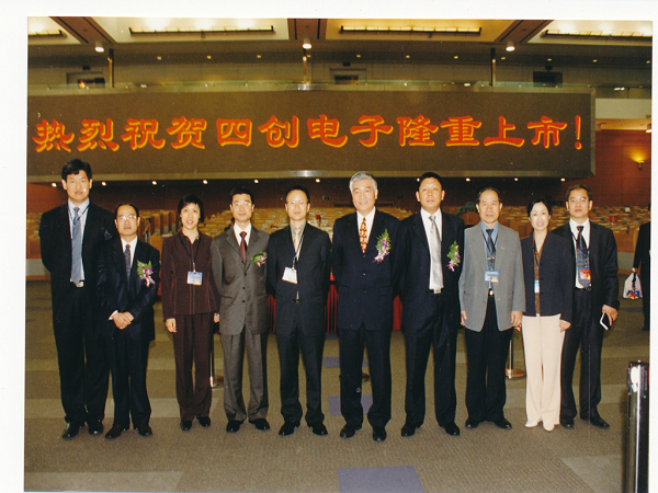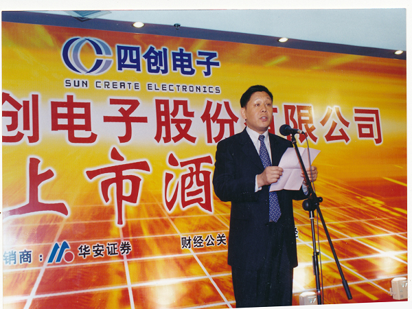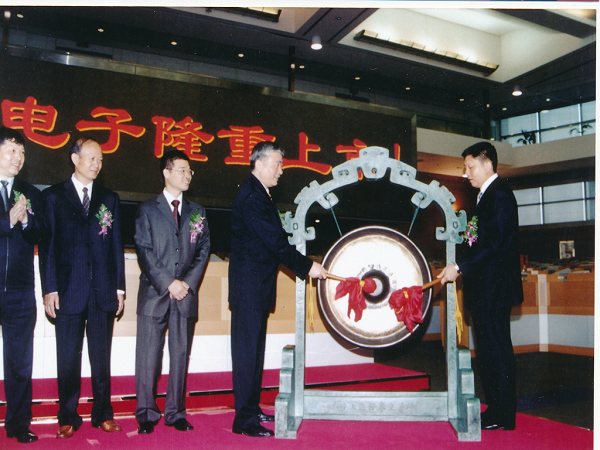 2004年5月9日晚,于上海紫金山大酒店舉行上市酒會,時任中國電子科技集團(tuán)公司總經(jīng)理王志剛與時任公司董事長吳曼青共筑香檳塔