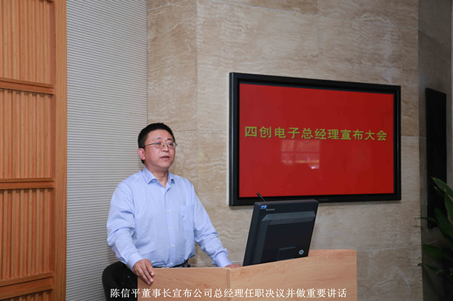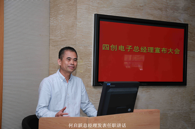 宣布大會(huì)上,新任四創(chuàng)公司總經(jīng)理何啟躍做了任職講話。他表示四創(chuàng)電子在董事會(huì)的領(lǐng)導(dǎo)下,在全體員工和領(lǐng)導(dǎo)的支持和努力下取得了巨大的成績(jī),如何在新的市場(chǎng)下,在新的環(huán)境下實(shí)現(xiàn)騰飛發(fā)展,是一個(gè)重大的考驗(yàn)。任重而道遠(yuǎn),今后將兢兢業(yè)業(yè),恪盡職守,和大家一起,努力地實(shí)現(xiàn)董事會(huì)提出的戰(zhàn)略目標(biāo)。講話最后,何啟躍總經(jīng)理對(duì)公司各部門提出了要求并安排了工作任務(wù),同時(shí)表示要主動(dòng)學(xué)習(xí)公司的歷史及未來發(fā)展?fàn)顩r,盡快融入到四創(chuàng)電子,以期達(dá)成董事會(huì)對(duì)公司的目標(biāo)和期望。