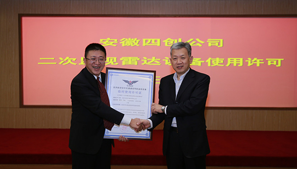 12月27日上午,安徽四創(chuàng)電子股份有限公司二次監(jiān)視雷達(dá)設(shè)備使用許可頒證儀式在新區(qū)舉行,中國民航局空管辦許浩主任代表中國民用航空局向四創(chuàng)電子頒發(fā)了《民用航空空中交通通信導(dǎo)航監(jiān)視設(shè)備使用許可證》證書。中國民用航空局空管行業(yè)管理辦公室許浩主任、民航局空管局李其國副局長、空管辦通導(dǎo)處郭靜副處長、中國電科集團(tuán)劉元鵬總經(jīng)濟(jì)師、合肥市政府、38所及四創(chuàng)電子等相關(guān)領(lǐng)導(dǎo)出席了頒證儀式。會議由中國民航局空管辦通導(dǎo)處郭靜副處長主持。