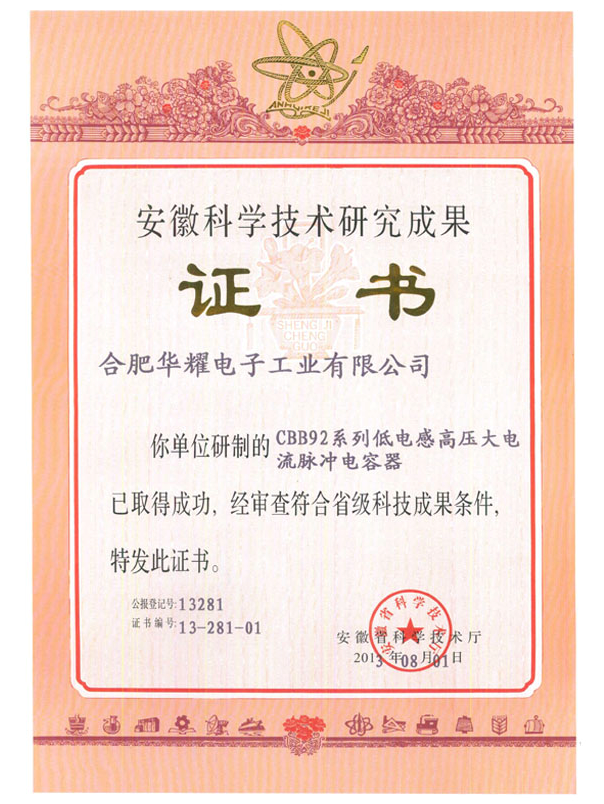 近日,公司下屬子公司華耀電子自主研發(fā)的“CBB92系列低電感高壓大電流脈沖電容器”、“純電動(dòng)汽車車載DC/DC轉(zhuǎn)換器”、“高頻高效多路脈沖調(diào)制輸出DC/DC電源模塊”、“高效小體積導(dǎo)軌系列電源”等4項(xiàng)研發(fā)成果獲得安徽省省級(jí)科技成果證書。