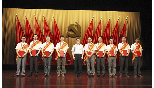 在歡快的《團結(jié)友誼進行曲》中,陳信平所長、陳學軍書記分別為獲獎的先進黨支部和“十佳共產(chǎn)黨員”頒發(fā)獎牌和證書。隨后,四名獲獎代表向大會報告了所在支部和個人在創(chuàng)先爭優(yōu)活動中的先進經(jīng)驗和做法。