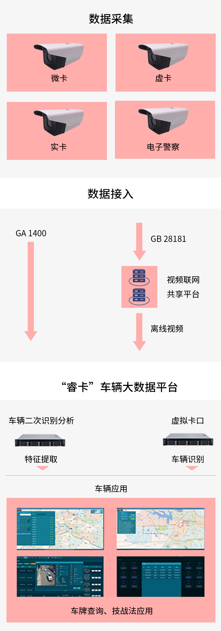 “??ā避囕v大數(shù)據(jù)平臺是一款能夠復(fù)用城市高清治安監(jiān)控攝像機(jī),利用視頻分析技術(shù)、大數(shù)據(jù)技術(shù)實現(xiàn)車輛抓拍、特征識別和車輛技戰(zhàn)法等功能的平臺,為綜治、公安、城管等部門提供決策支持。