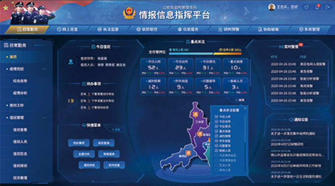 情報(bào)信息指揮平臺(tái)圍繞總(支)隊(duì)業(yè)務(wù)需求,綜合利用監(jiān)所內(nèi)部和外部數(shù)據(jù)資源,提供日常勤務(wù)、網(wǎng)上巡查、聯(lián)防聯(lián)控、執(zhí)法監(jiān)督、信息服務(wù)、研判分析、協(xié)助破案和系統(tǒng)管理等功能,實(shí)現(xiàn)公安監(jiān)管總(支)隊(duì)的業(yè)務(wù)指導(dǎo)準(zhǔn)確性、安全預(yù)警智能化、預(yù)防重點(diǎn)隱患、工作管理規(guī)范化、信息數(shù)據(jù)聯(lián)動(dòng)化。