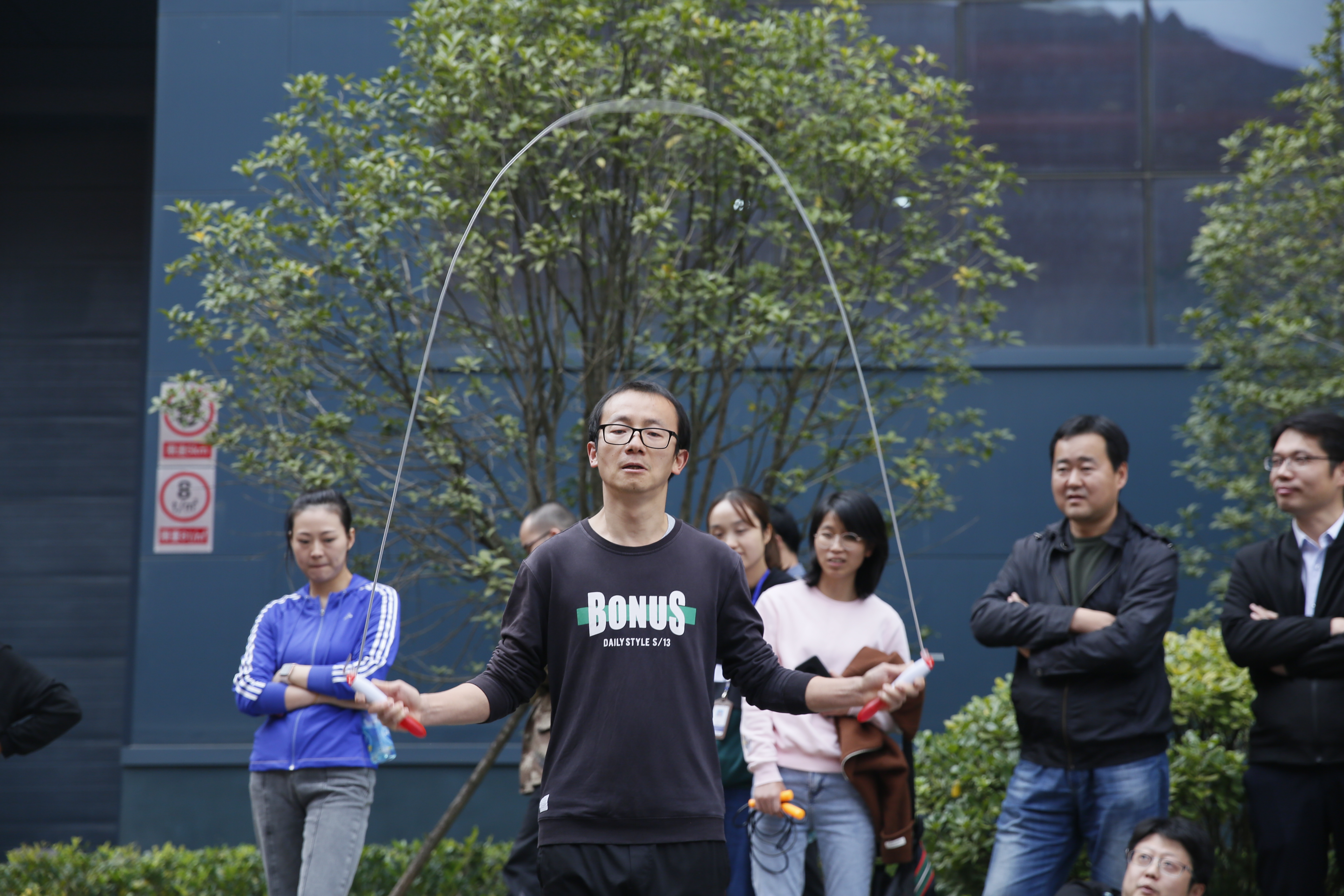 隨著裁判長陳敏的一聲哨響,16個賽位上運動員神情專注斗志飛揚,賽繩掠地有聲節(jié)奏明快,比賽開始。縱觀賽場,隊員們咬緊牙關(guān),奮力拼搏;裁判員凝神靜氣,仔細計數(shù);觀眾暗暗欽佩,爭相攝影留下美好瞬間。一些年逾50的大齡隊員,仍有勇氣與20來歲的年輕人同臺競技;公司領導們也積極帶頭上場比賽,為大家樹立了拼搏的榜樣。