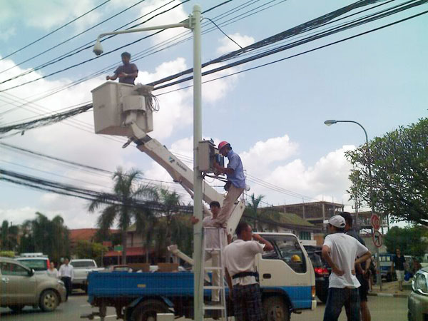目前,工程進入電子警察及卡口的路面切割階段,為加快進度,避免交通高峰期施工,項目組人員只能在夜間進行施工,每天從晚間7點工作至凌晨5點。工作強度之大,工時之久非常人能夠承受。與此同時,國內(nèi)的項目組成員也積極配合老撾現(xiàn)場,做好后方支持工作。